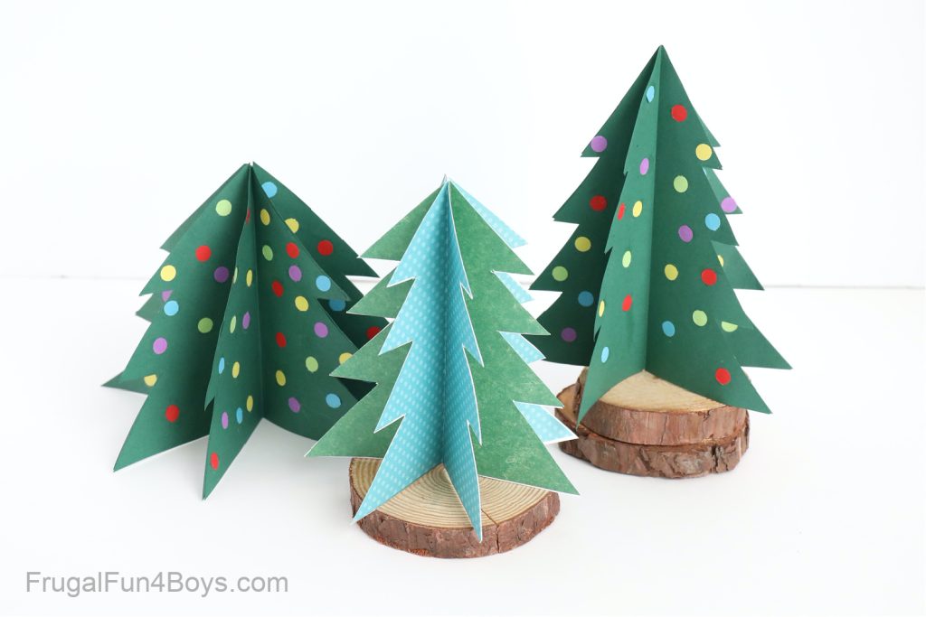Assemble festive Christmas trees with paper with this easy tutorial! Use real wooden coasters for display.