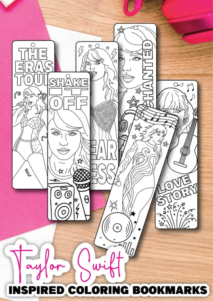 This set of Taylor Swift bookmarks gives kids even more designs to color and personalize. With bold outlines and themed graphics, they’re simple to print and easy to decorate with markers, glitter glue, or even shiny paper scraps. You can laminate them if you want them to last longer.